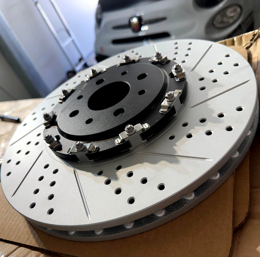 Coppia disco freno 330mm baffati e forati (per Fiat Abarth 500, 595, 695)