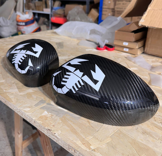Cover in carbonio calotte specchietti scorpione bianco (per Fiat Abarth 500, 595, 695, Grande Punto)