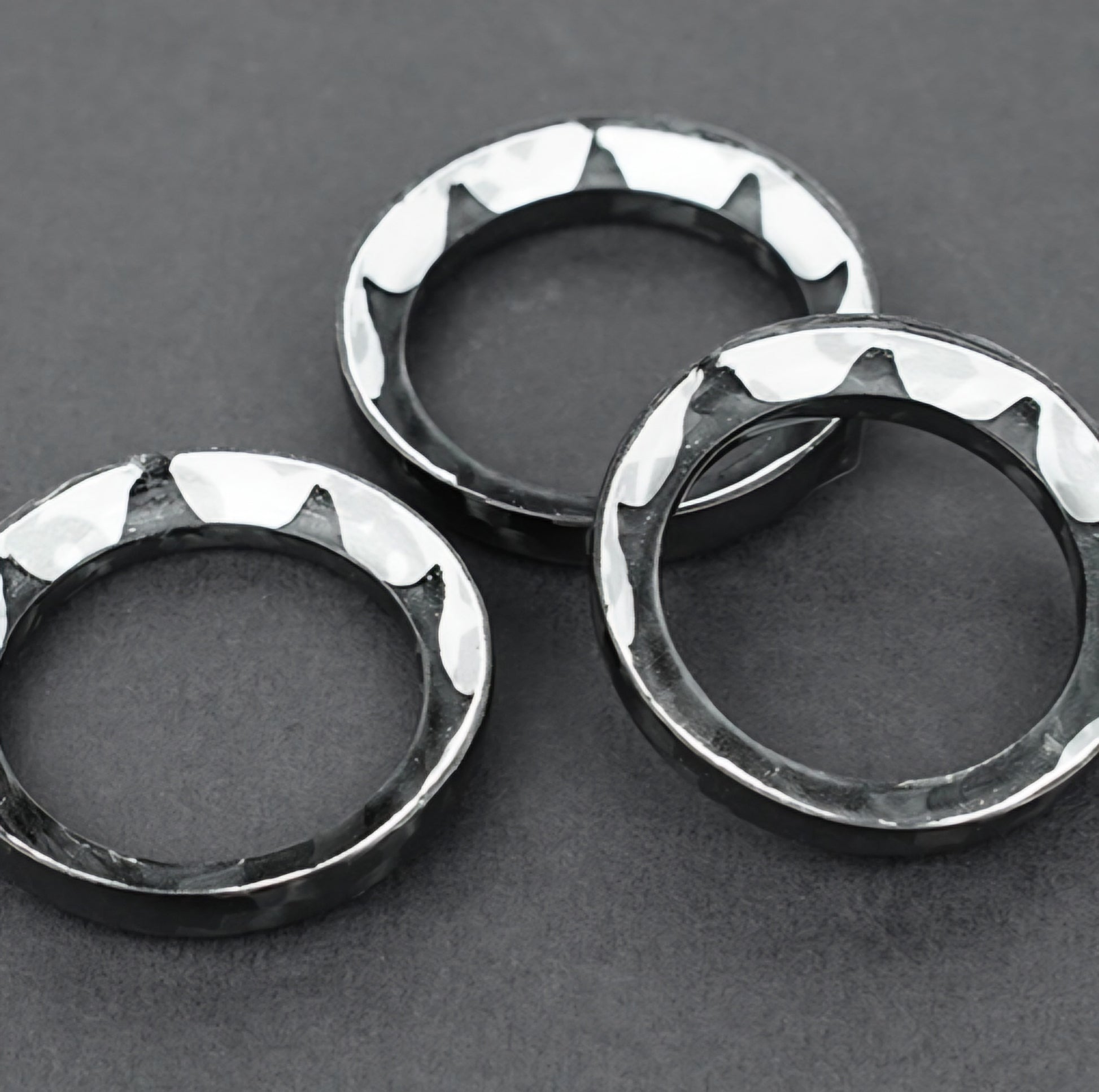 Anelli di alta qualità realizzati in vero carbonio per i pulsanti della plancia.