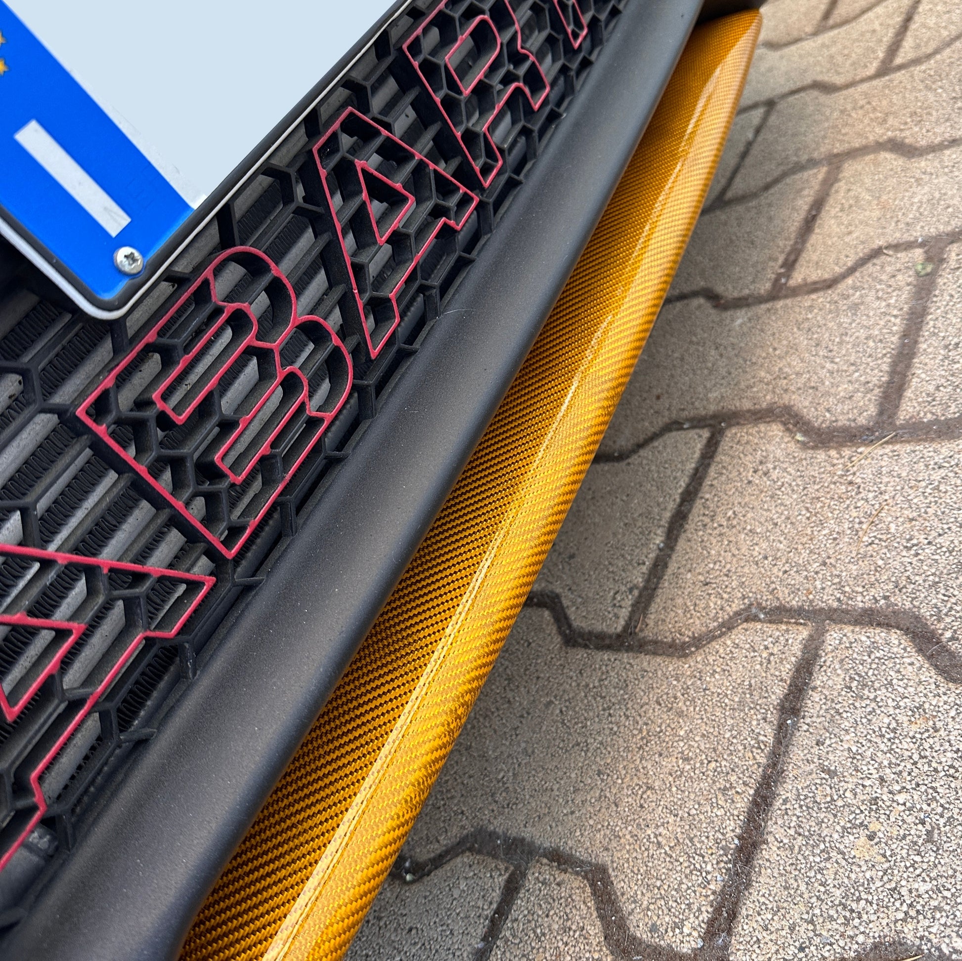 Cover giallo dorato in carbonio splitter lama anteriore (per Fiat Abarth 500 Restyling, 595, 695)