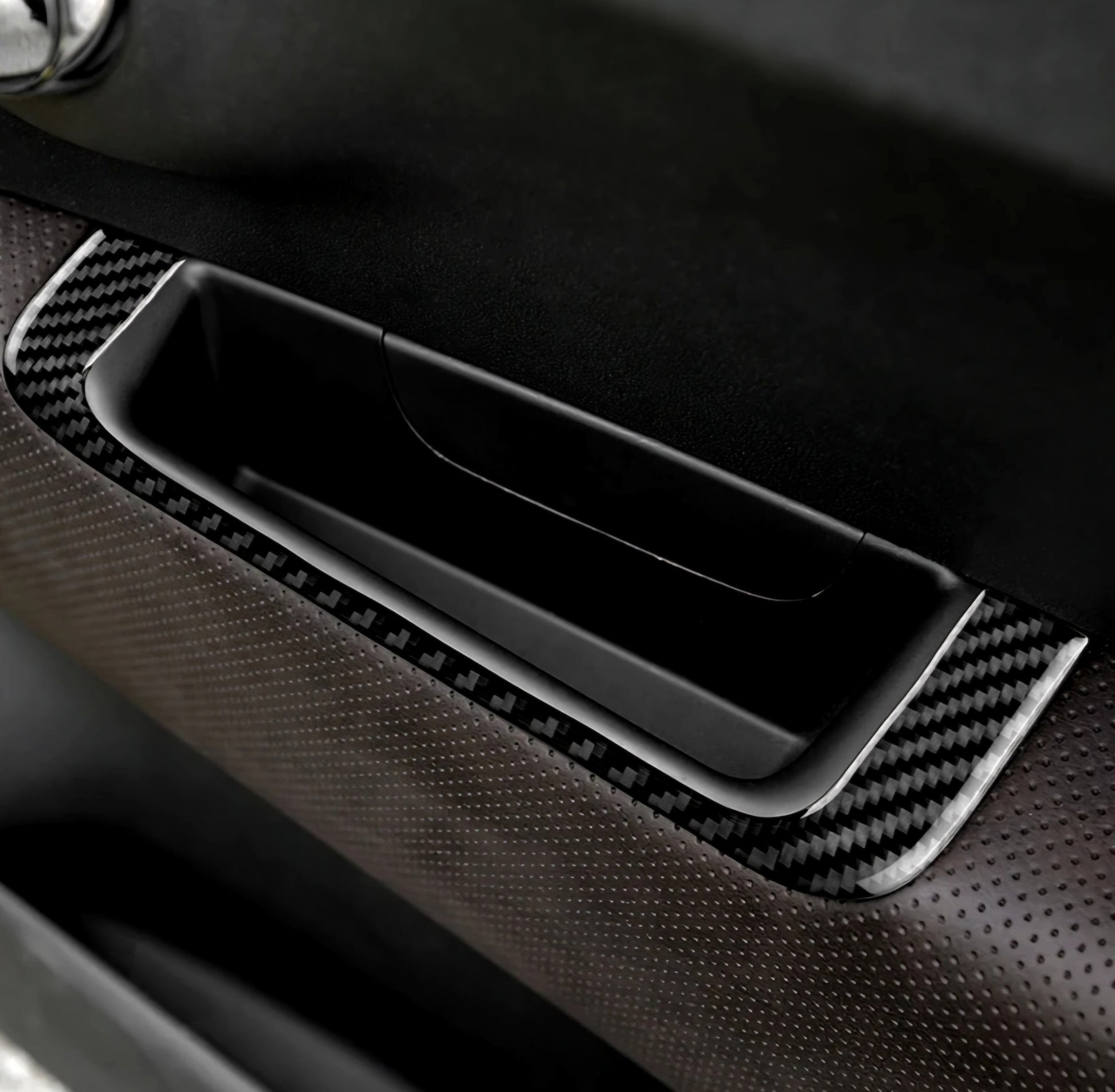 Cover resinate morbide di alta qualità realizzate in vero carbonio per le portiere interne.