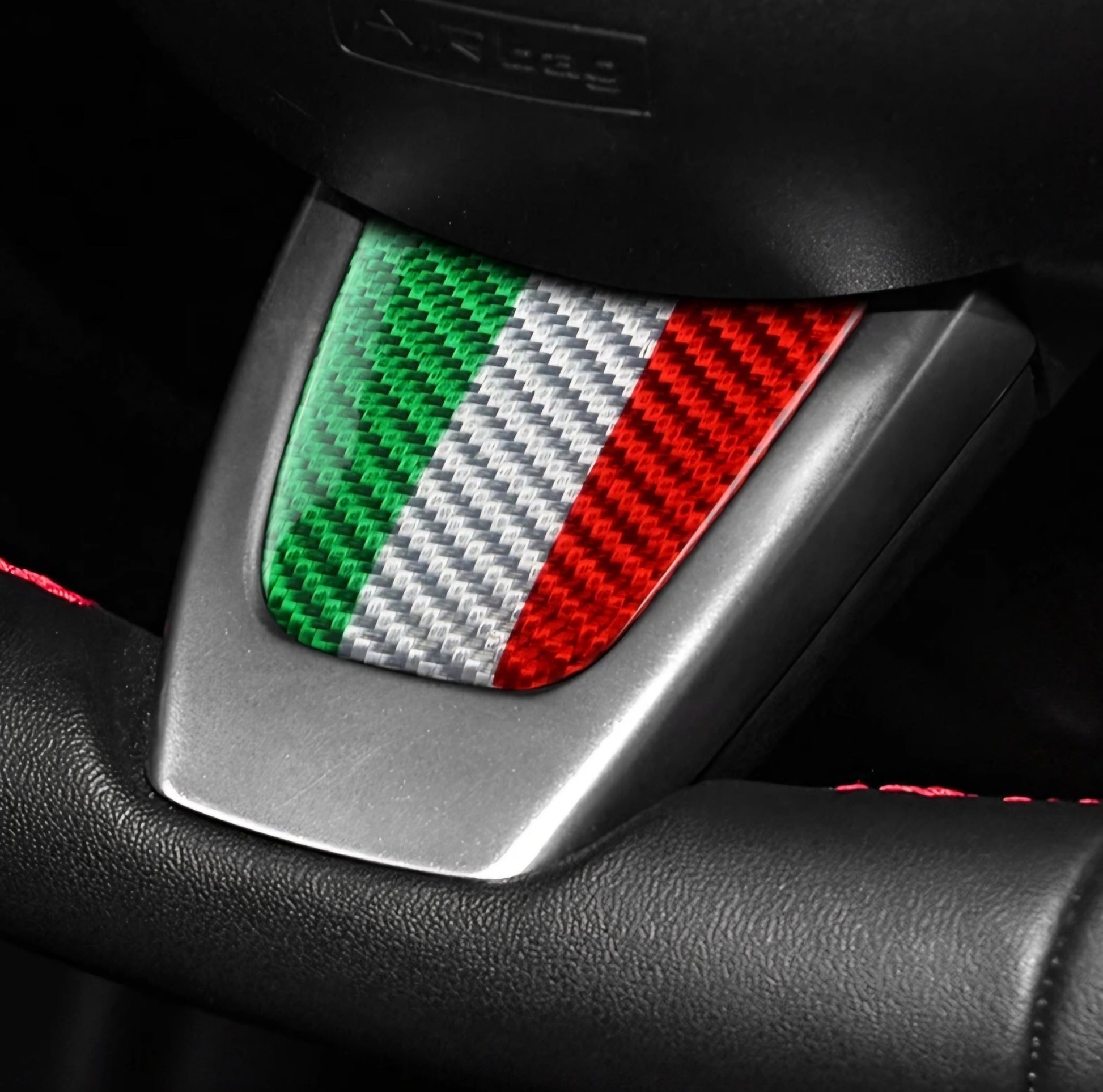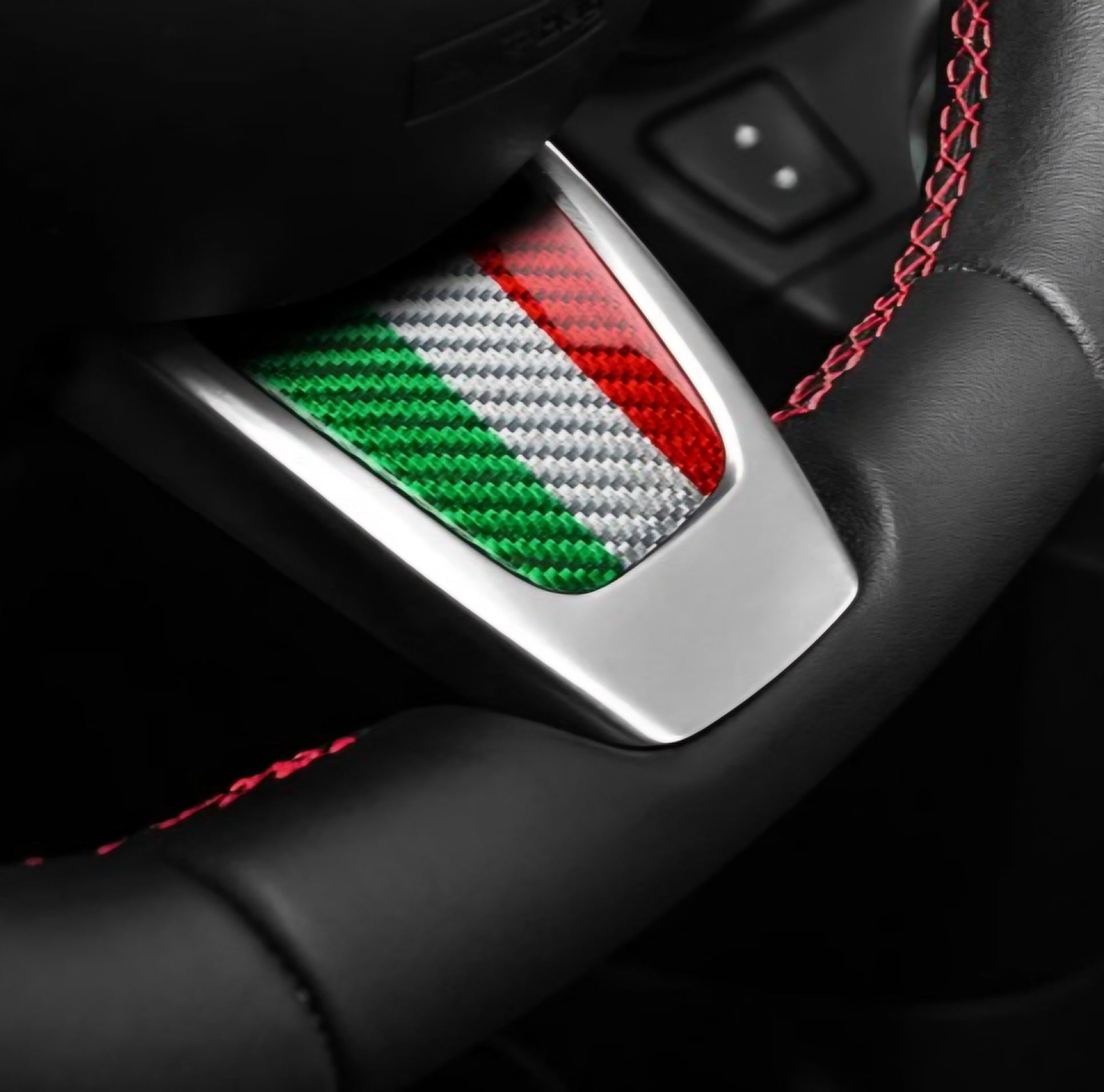 Inserto tricolore di alta qualità realizzato in carbonio per la parte inferiore del volante.