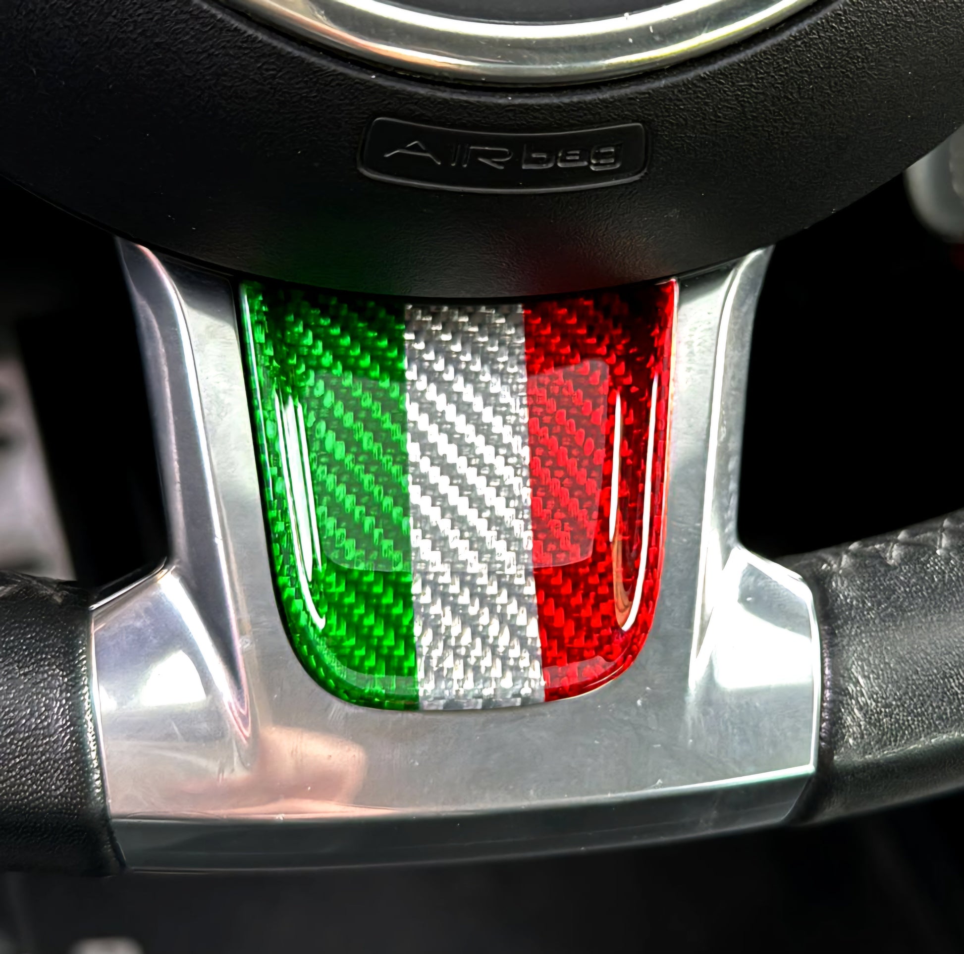 Inserto tricolore di alta qualità realizzato in carbonio per la parte inferiore del volante.