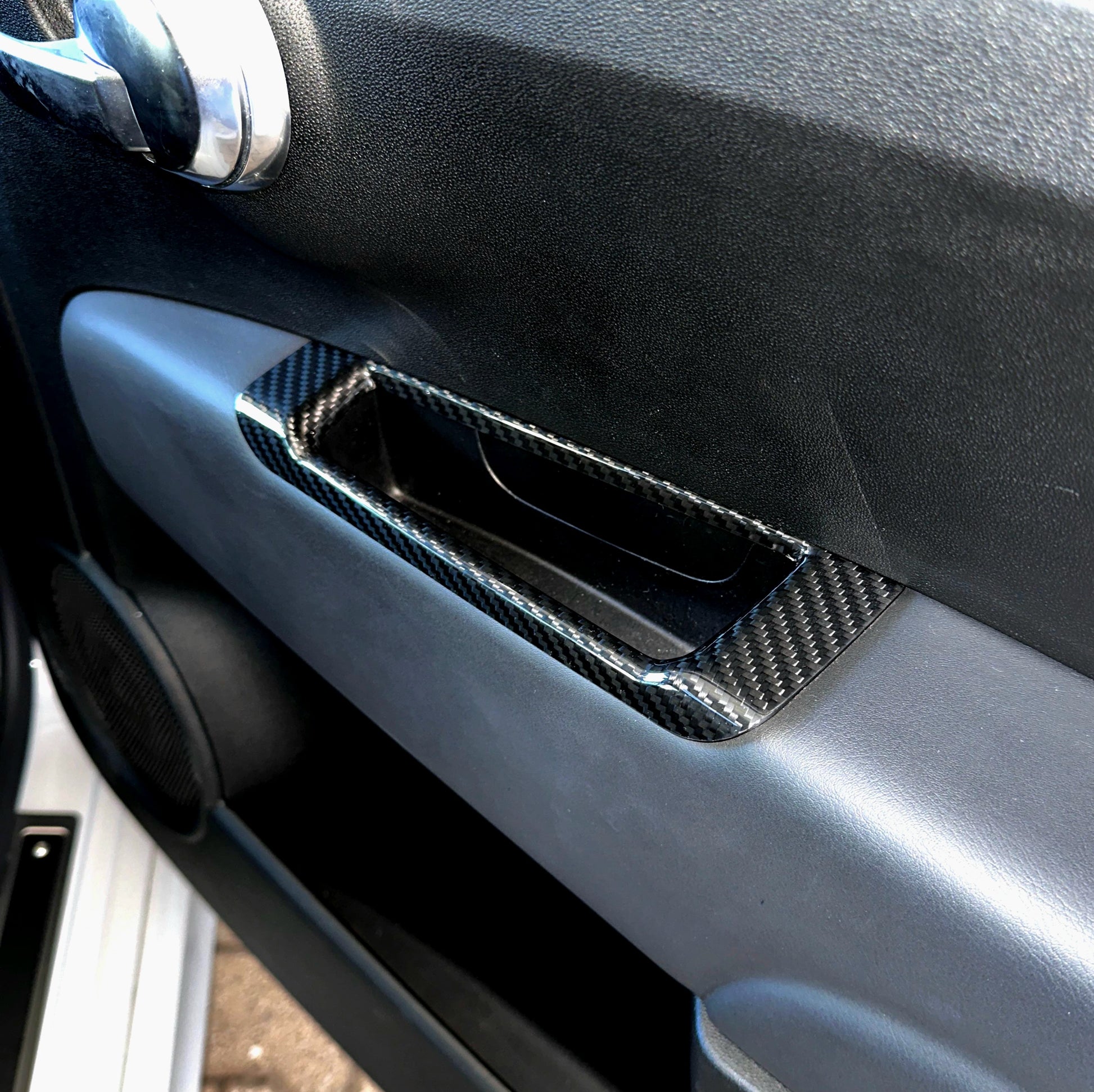 Cover di alta qualità realizzate in vero carbonio per le maniglie interne degli sportelli dell'auto.