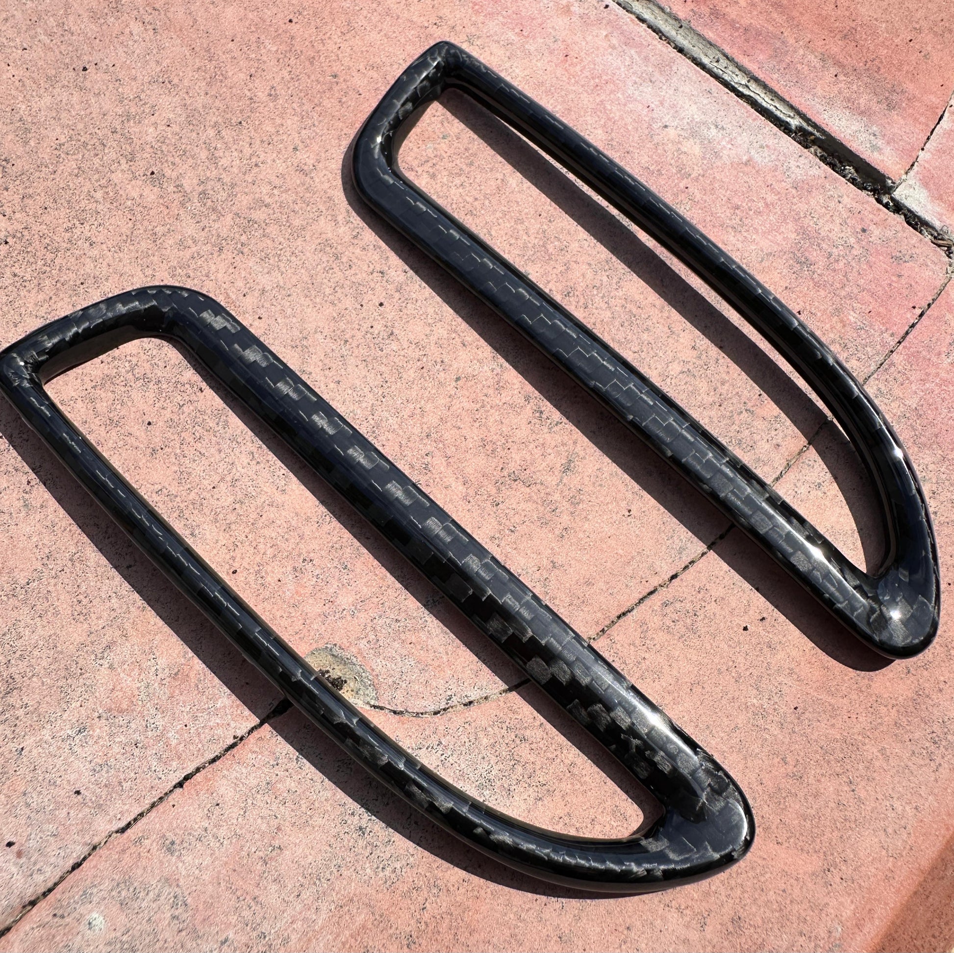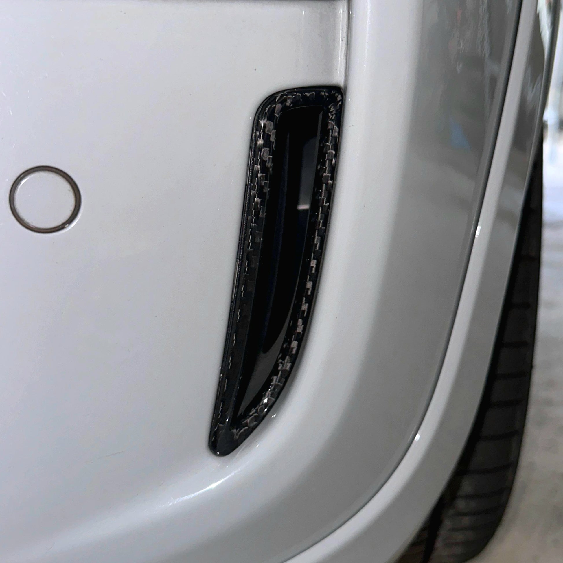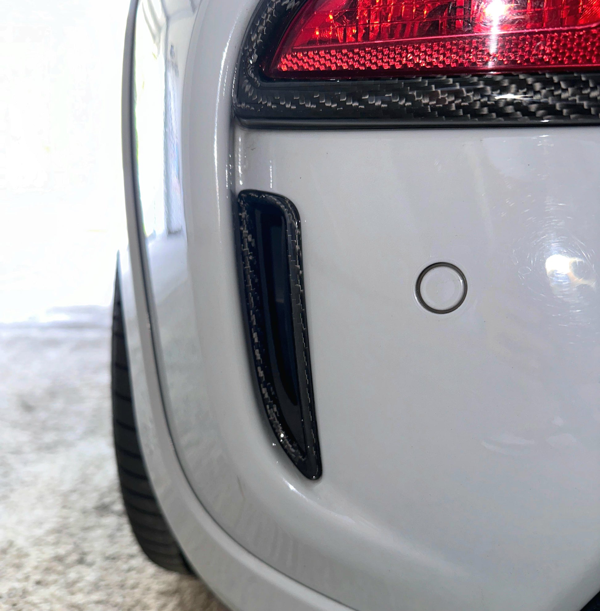 Cover di alta qualità realizzate in vero carbonio per le prese d'aria del paraurti posteriore.
