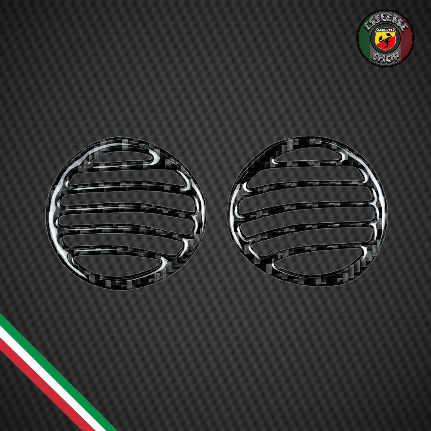Coppia di cover resinate morbide di alta qualità realizzate in vero carbonio per le bocchette dell'aria superiori del cruscotto.
