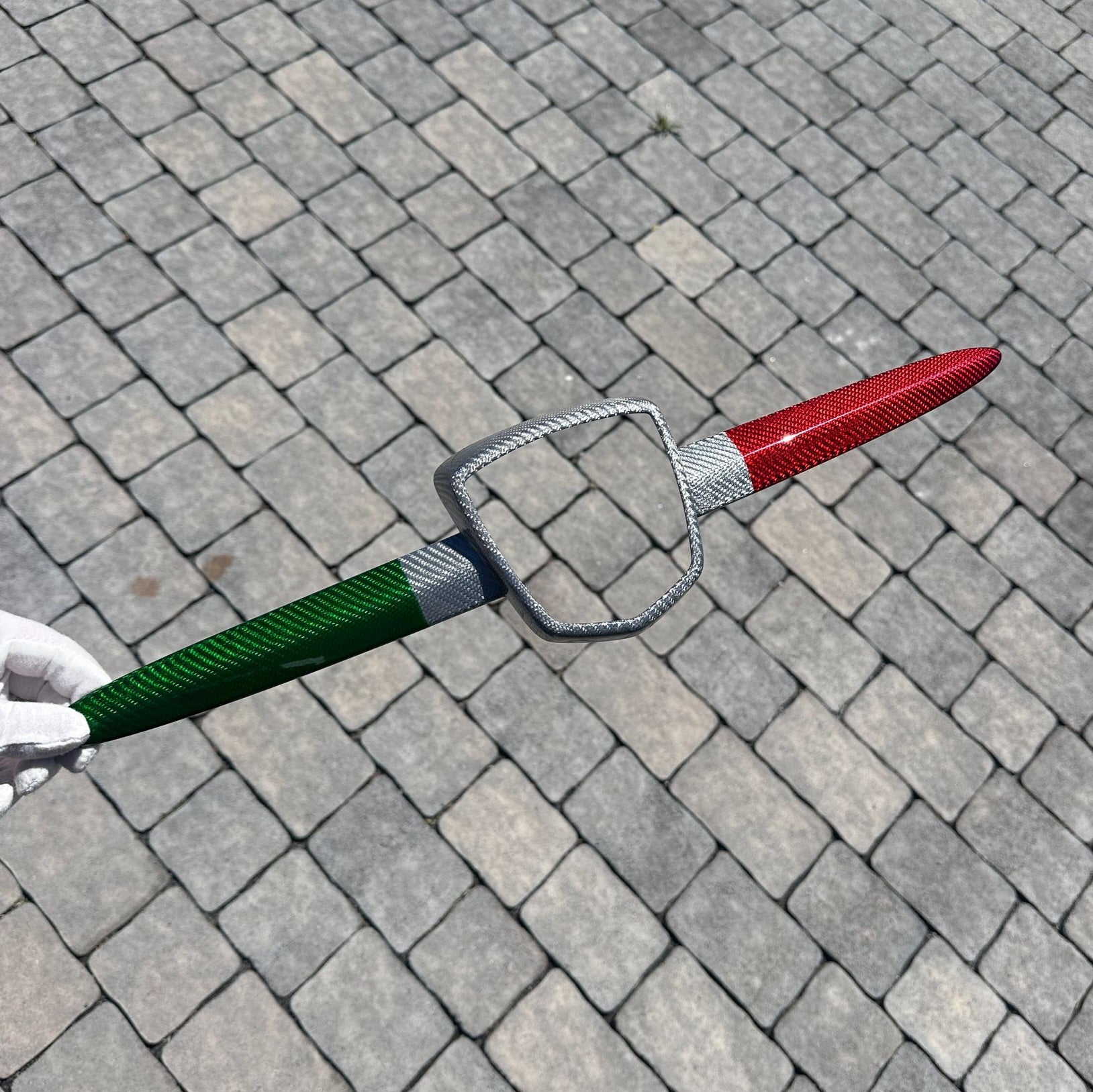 Cover tricolore di alta qualità realizzata in vero carbonio per il logo anteriore dell'auto.