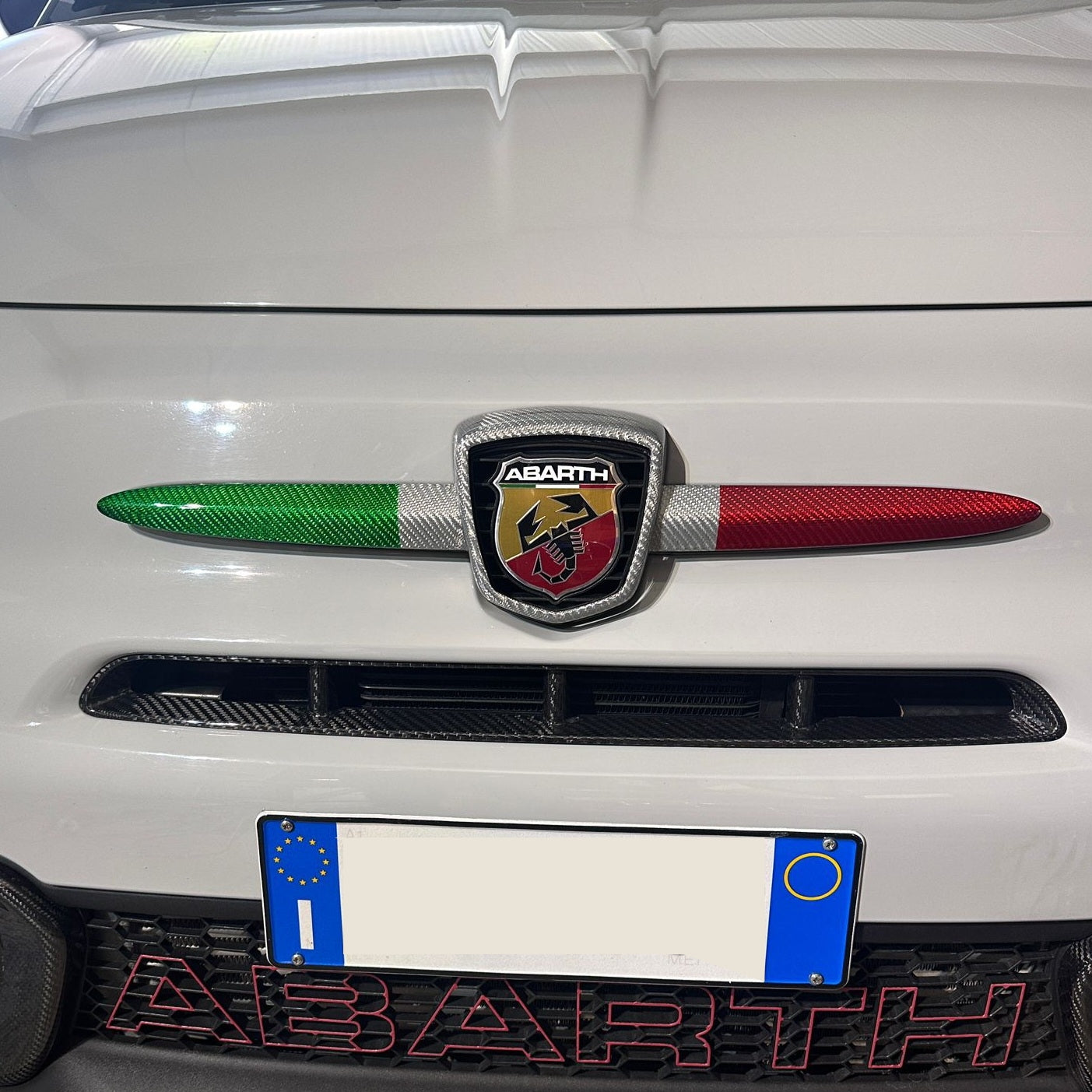 Cover tricolore in carbonio per logo anteriore (per Fiat Abarth 500, 595, 695)