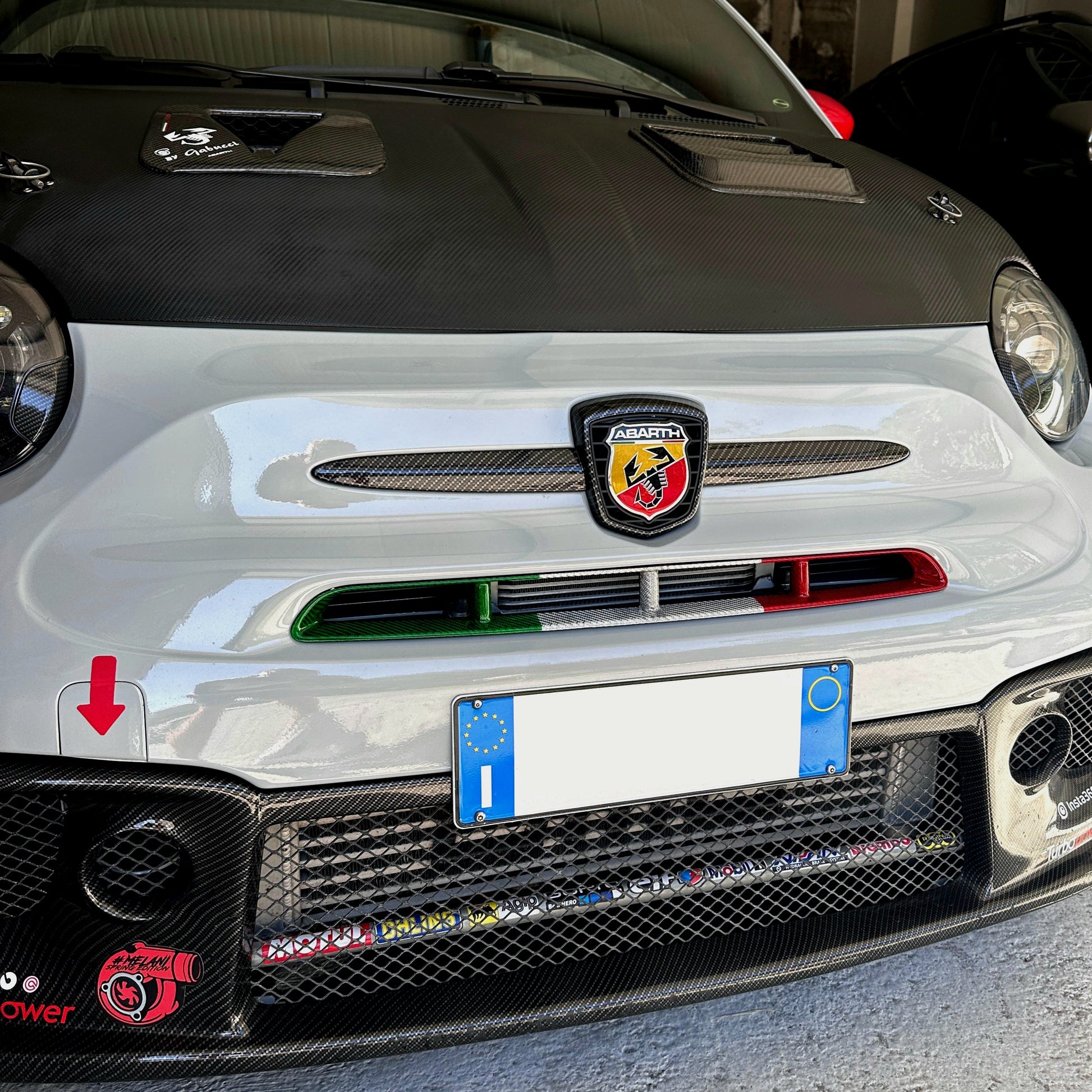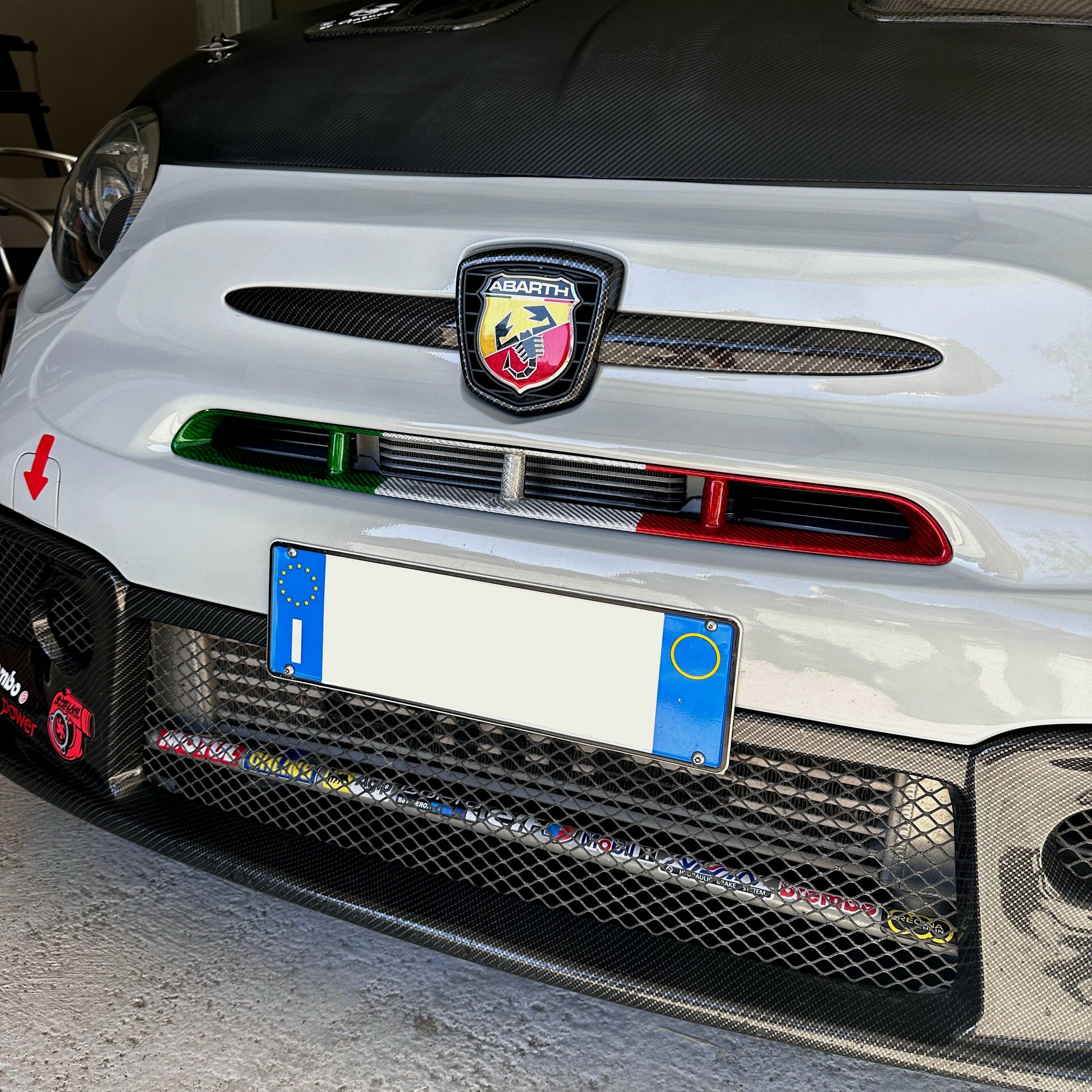 Cover tricolore in carbonio presa d'aria paraurti anteriore (per Fiat Abarth 500 Restyling, 595, 695)