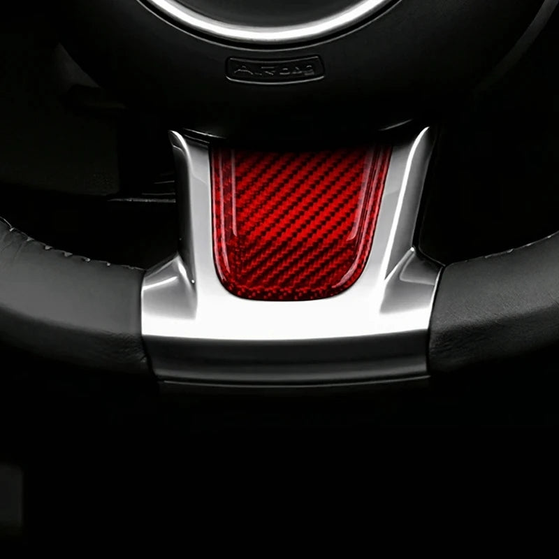 Inserto rosso di alta qualità realizzato in carbonio per la parte inferiore del volante.