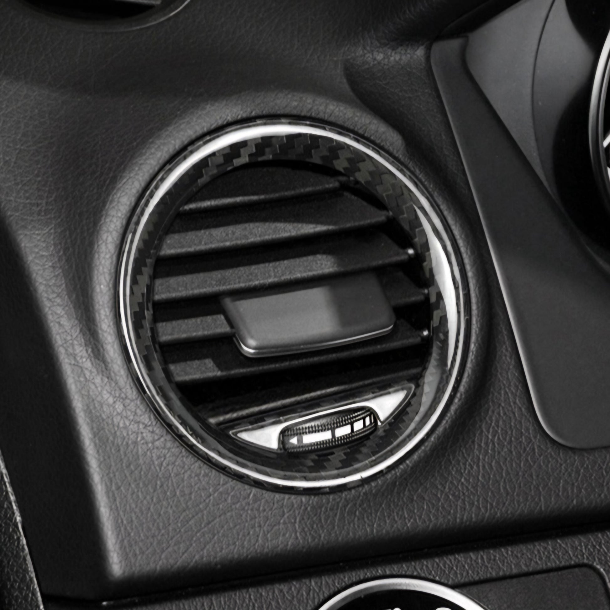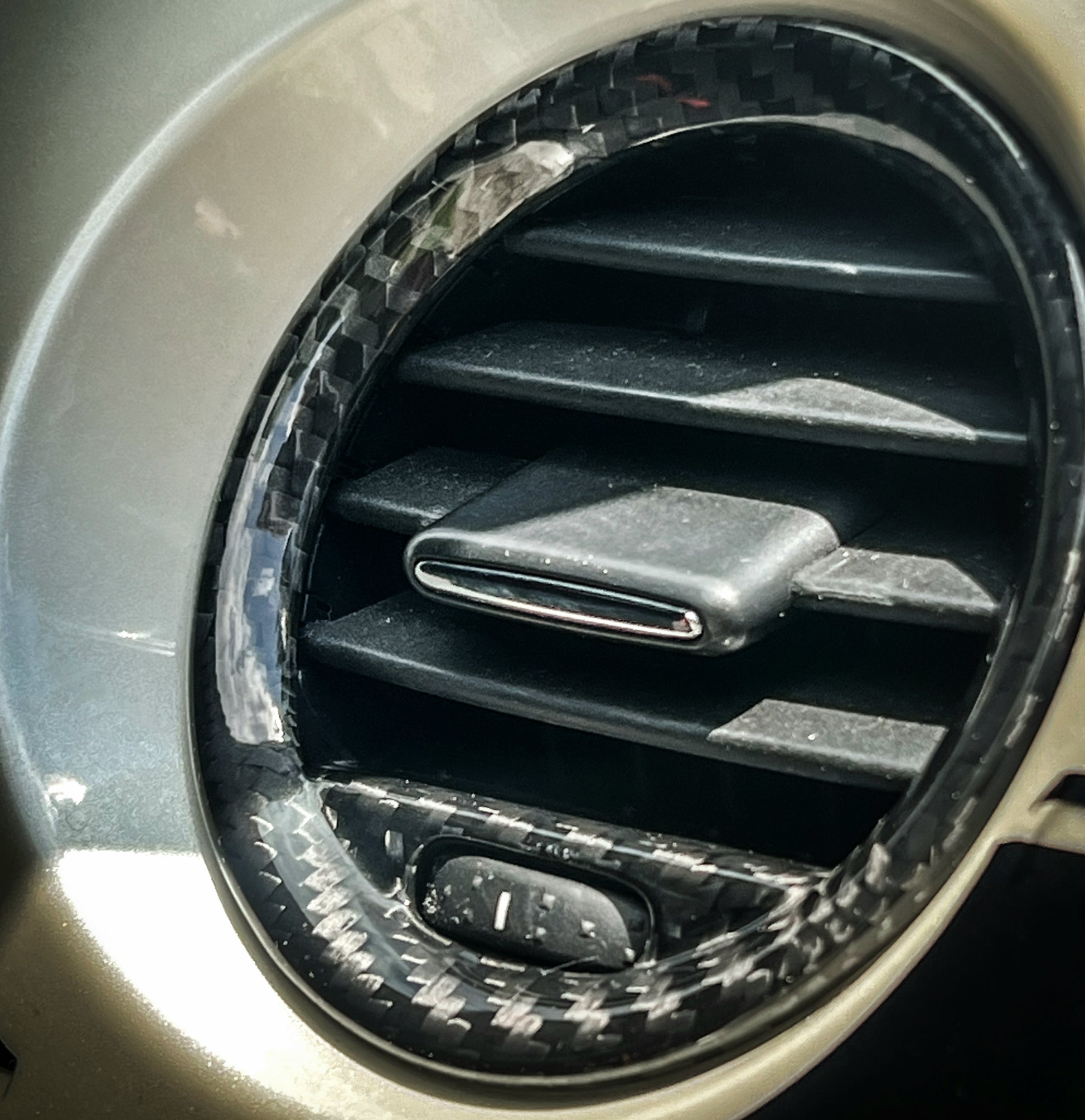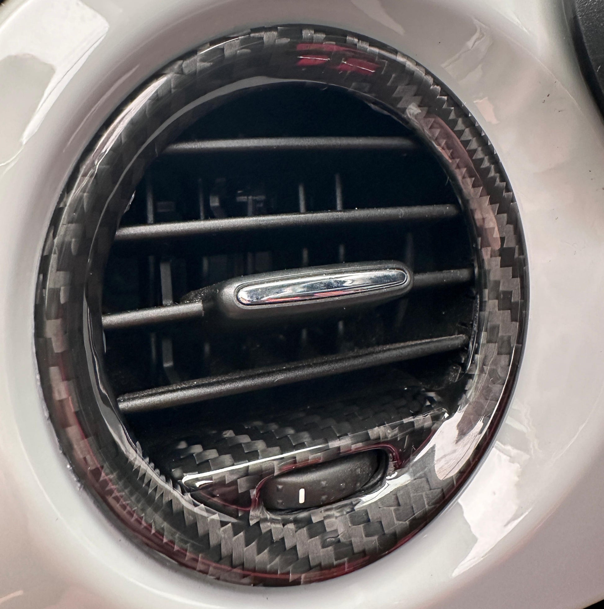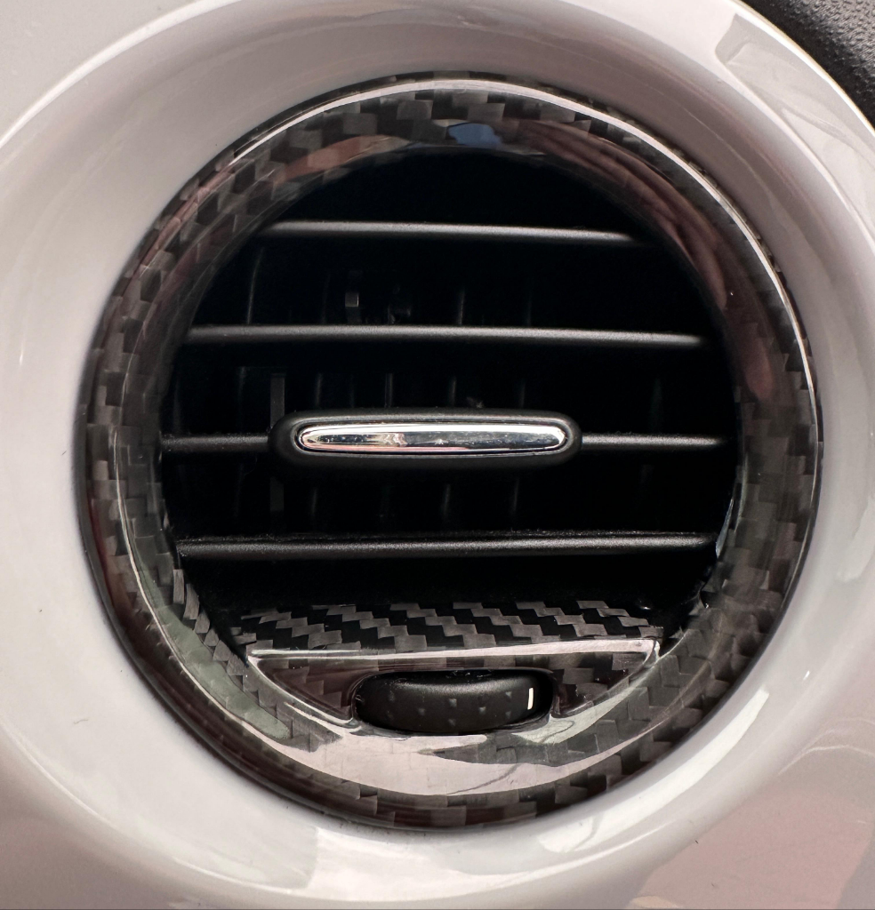 Coppia di anelli di alta qualità realizzati in vero carbonio per le bocchette dell'aria sul cruscotto.